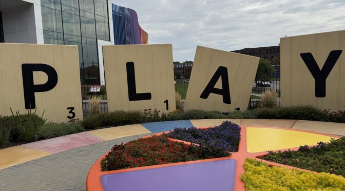 Featured image of giant Scrabble PLAY tiles at The Strong Museum.  Photo by Edmond Y. Chang.  Used with permission.